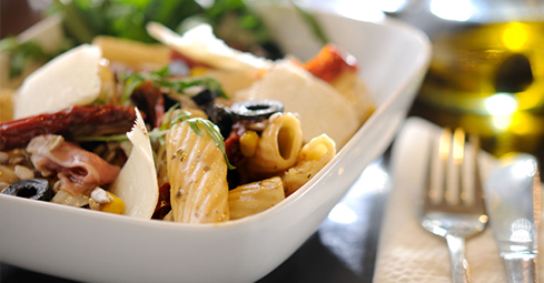 Kalte Vorspeisen, frische und knackige Salatvariationen, reichhaltige Pastagerichte mit unseren überbackenen Spezialitäten, Fleisch- und Fischgerichte, Pizzen und Drehspießgerichte.